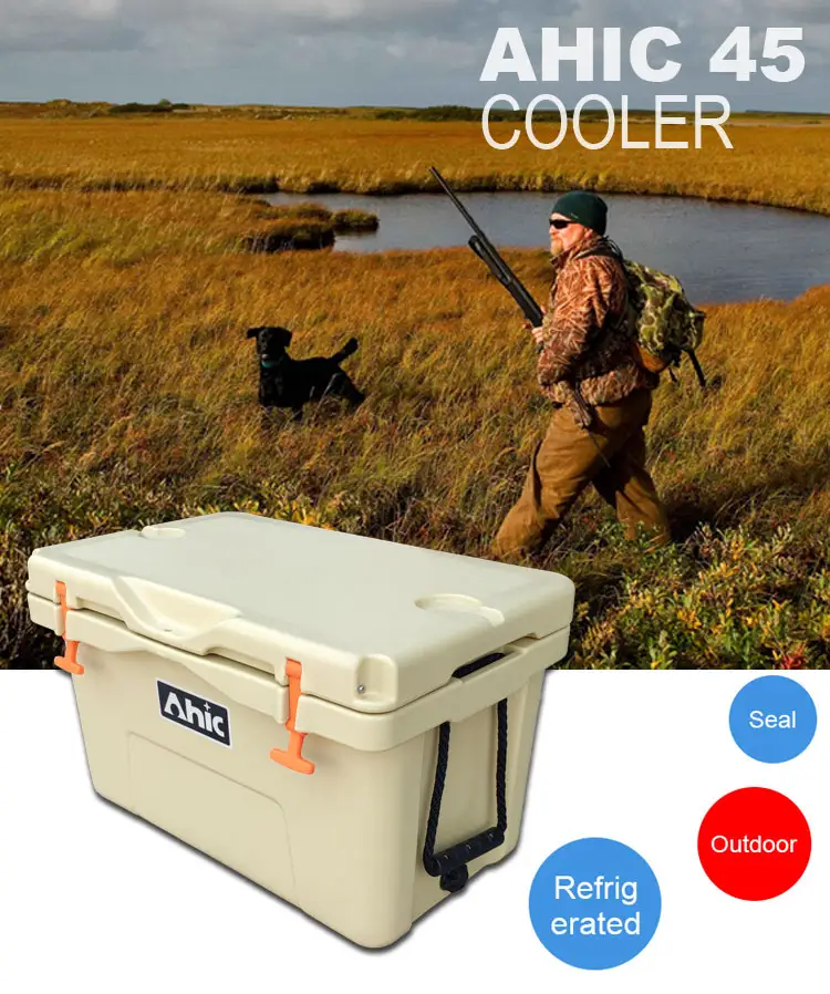 AHIC 45 QT Food grade material LLDPE Rotomolded cooler for food with wheels and rope handles